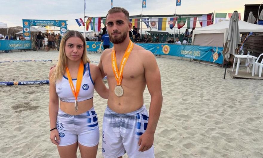 Διπλή μεγάλη επιτυχία για την Ελλάδα στο Παγκόσμιο Πρωτάθλημα Beach Wrestling U20 που διεξάγεται στην Κατερίνη. Ο Ηλίας Καρνάβας κι η Ευδοξία Παπαδοπούλου κατέκτησαν το ασημένιο μετάλλιο στο Παγκόσμιο Πρωτάθλημα Beach Wrestling U20 που διεξάγεται στην Κατερίνη και σήκωσαν την ελληνική σημαία ψηλά.