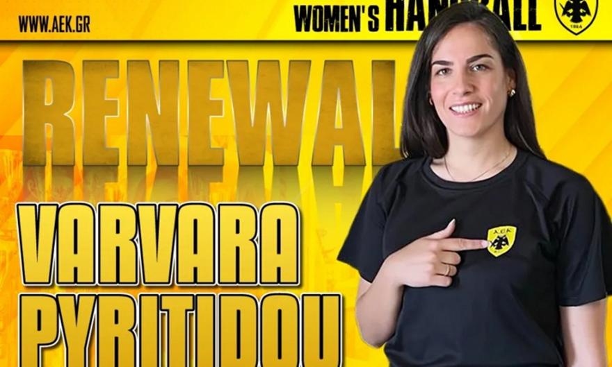 «Η ΑΕΚ βρίσκεται στην ευχάριστη θέση να ανακοινώσει την ανανέωση της συνεργασίας της με τη Βαρβάρα Πυριτίδου. Η Ελληνίδα τερματοφύλακας, ύψους 1,73 μ., θα ενισχύσει και τη νέα σεζόν το τμήμα χάντμπολ γυναικών της ΑΕΚ.