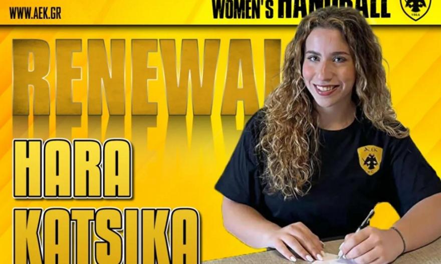 «H ΑΕΚ βρίσκεται στην ευχάριστη θέση να ανακοινώσει την ανανέωση της συνεργασίας της με την Χαρά Κατσίκα. Η 20χρονη (11/09/2004) δεξιά εξτρέμ θα αγωνιστεί και τη νέα σεζόν στη γυναικεία ομάδα χάντμπολ της ΑΕΚ.