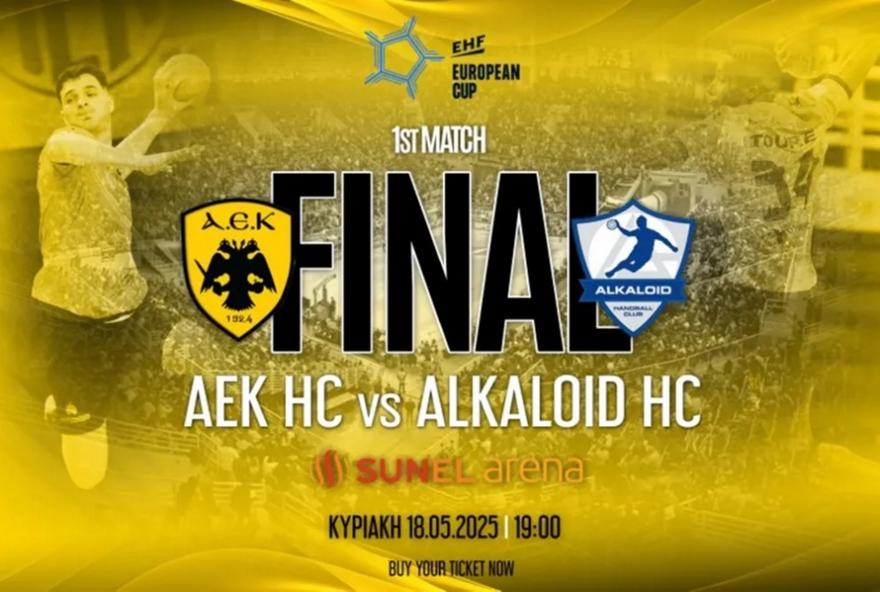 Στη διάθεση των φίλων της ΑΕΚ από τις 16:30 θα είναι από τα εκδοτήρια της SUNEL Arena τα εισιτήρια για τον πρώτο τελικό του EHF European Cup με την Αλκαλόιντ (19:00).