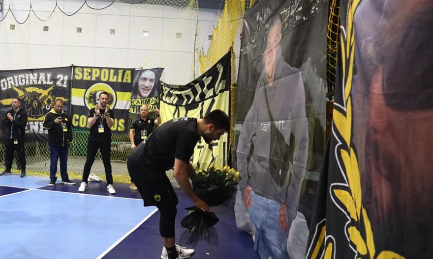 Οι παίκτες της «Ένωσης» άφησαν ανθοδέσμη μπροστά στους οπαδούς της στη μνήμη του οπαδού της, Μάριου Ρουμπή, που έχασε τη ζωή του σε οπαδικό επεισόδιο, ενώ στη συνέχεια τηρήθηκε ενός λεπτού σιγή.