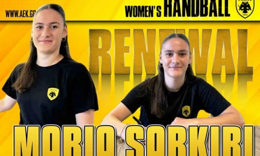 «Η ΑΕΚ βρίσκεται στην ευχάριστη θέση να ανακοινώσει την ανανέωση της συνεργασίας της με τη Μαρία Σαρκίρη. Η νεαρή πλέι μέικερ, γεννημένη στις 11/09/2007, θα ενισχύσει για τα επόμενα δύο χρόνια το τμήμα του χάντμπολ γυναικών της ΑΕΚ.