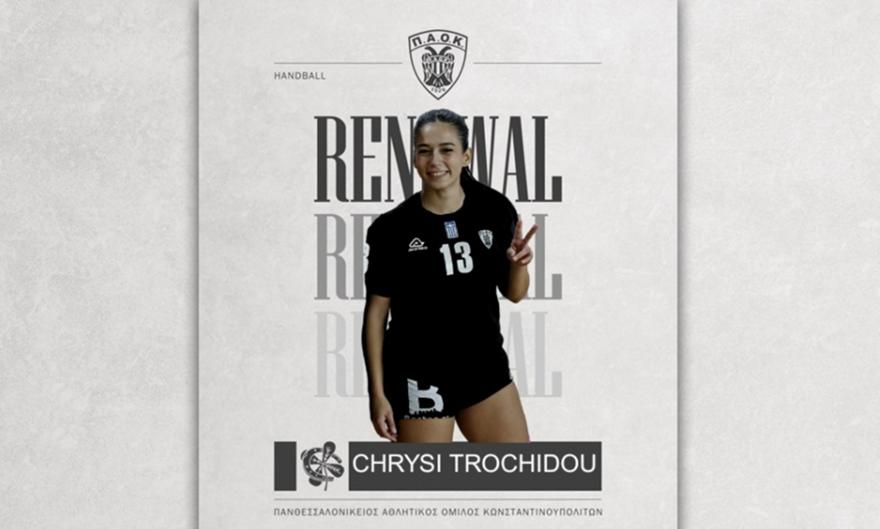 Χαντμπολίστρια του ΠΑΟΚ θα είναι και για την επόμενη σεζόν η Χρυσή Τροχίδου. Ο Ερασιτέχνης «δικέφαλος» ανακοίνωσε την ανανέωση της συνεργασίας του με την 27χρονη εξτρέμ για δεύτερη συνεχόμενη χρονιά.