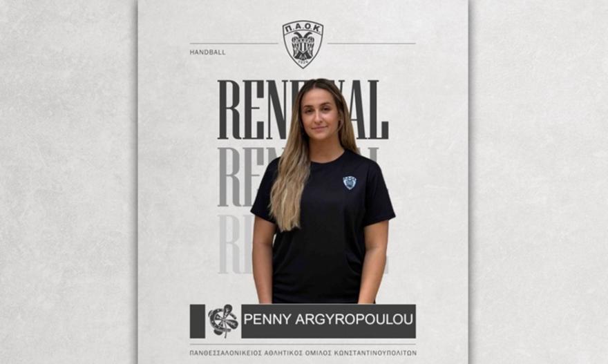 «Ο ΠΑΟΚ και το τμήμα χάντμπολ γυναικών ανακοινώνουν την ανανέωση συνεργασίας με την αθλήτρια, Πένυ Αργυροπούλου, για την αγωνιστική περίοδο 2025-2026. Η Ελληνίδα διεθνής πίβοτ, γεννημένη το 1998 και με ύψος 174cm, συνεχίζει για δεύτερη σερί χρονιά στα ασπρόμαυρα.
