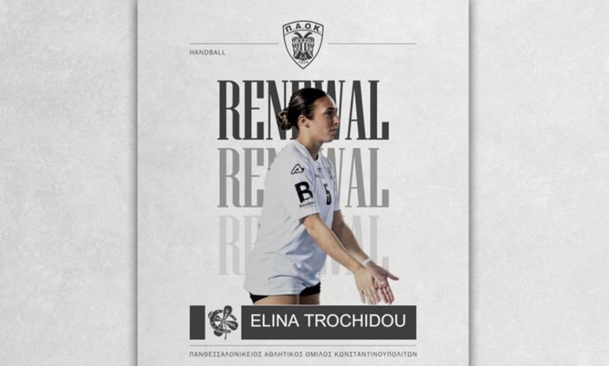 Χαντμπολίστεια του ΠΑΟΚ παρέμεινε την Τετάρτη η Ελίνα Τροχίδου. Ο Ερασιτέχνης «δικέφαλος» ανακοίνωσε την ανανέωση της συνεργασίας της με την 24χρονη διεθνή περιφερειακό για δεύτερη συνεχόμενη σεζόν, ώστε να συμβάλει όσο μπορεί, από την πλευρά της, στην επιστροφή του τιμήματος στον τίτλο της πρωταθλήτριας.