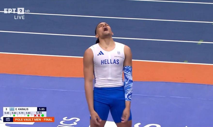 Παρά το πολύ καλό του ξεκίνημα στον τελικό, εκεί όπου πέρασε με περίσσια άνεση και μάλιστα με την πρώτη προσπάθεια τα 5,60μ. και 5,80 μέτρα, στη συνέχεια, ο Εμμανουήλ Καραλής είχε δύο άσχημες προσπάθειες στα 5,85μ.