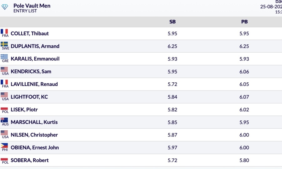 Ο 24χρονος πρωταθλητής θα αντιμετωπίσει ξανά όλους τους κορυφαίους, όπως τους δύο που τον ξεπέρασαν στη γαλλική πρωτεύουσα, τον Άρμαντ Ντουπλάντις και τον Σαμ Κέντρικς.