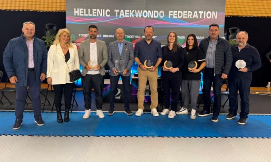 Η Ελληνική Ομοσπονδία Ταεκβοντό τίμησε τον Δήμαρχο Λουτρακίου - Περαχώρας κι Αγίων Θεοδώρων, Γιώργο Γκιώνη, και τον Αντιδήμαρχο Κοινωνικής Πολιτικής και Αθλητισμού, Θανάση Παπαθανασίου, για την πολύτιμη συνεργασία.
