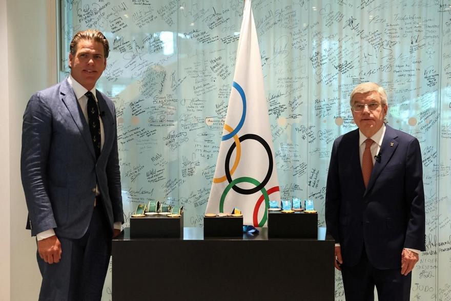 Τα μετάλλια παραδόθηκαν στον 50χρονο ολυμπιονίκη από τον πρόεδρο της Διεθνούς Ολυμπιακής Επιτροπής, Τόμας Μπαχ, κατά τη διάρκεια τελετής στα κεντρικά γραφεία της ΔΟΕ, στη Λωζάνη.