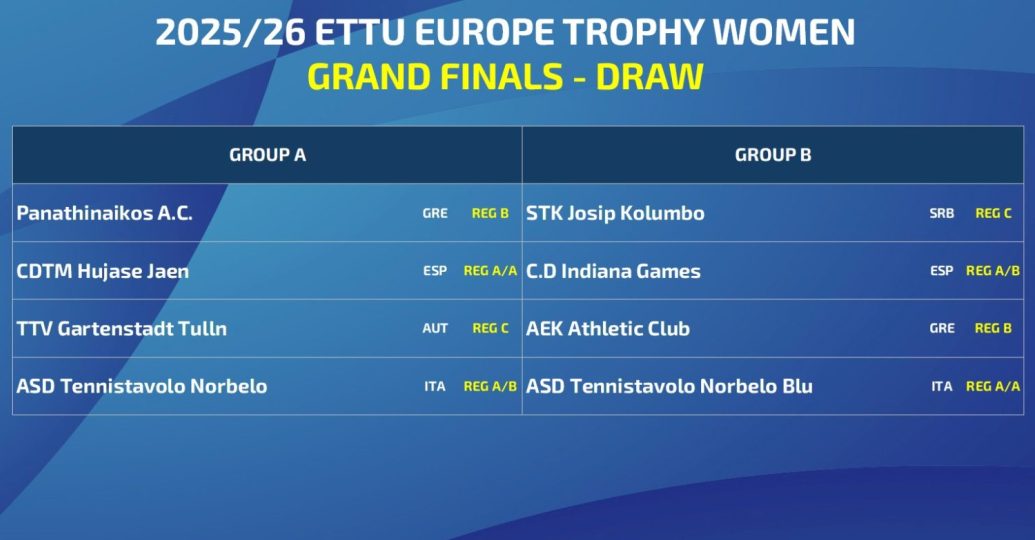 Τις κληρώσεις για το τελικό στάδιο των Europe Trophy πινγκ πονγκ της περιόδου 2025-2026 πραγματοποίησε την Τρίτη στο Λουξεμβούργο η ETTU.