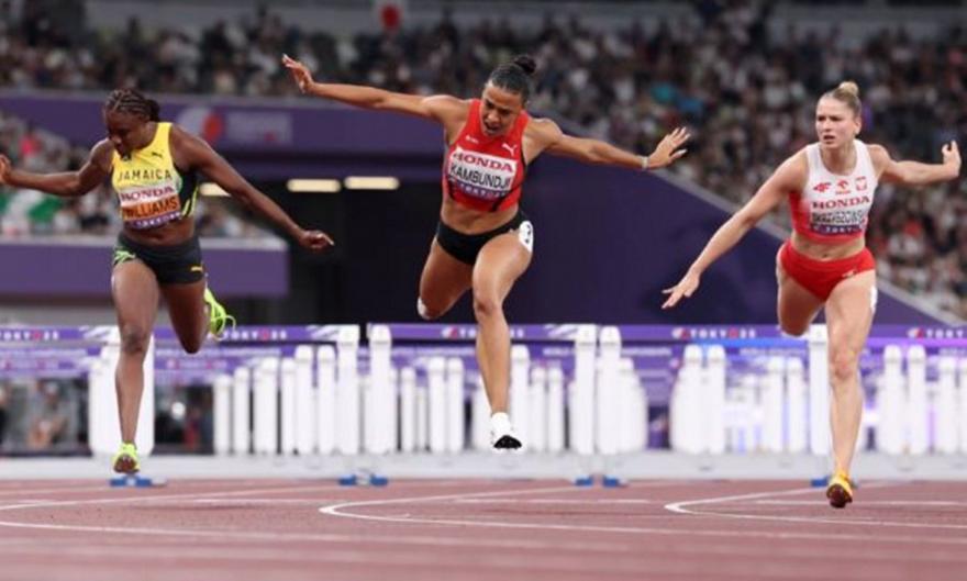 «Χρυσή» στον τελικό των 100 μέτρων με εμπόδια στο Παγκόσμιο Πρωτάθλημα στίβου του Τόκιο η Ντιτάτζι Καμπούντζι. Η Ελβετίδα εμποδίστρια τερμάτισε πρώτη με 12.24 μετά από μάχη με δύο ακόμα αθλήτριες, σημειώνοντας εθνικό ρεκόρ και την έβδομη καλύτερη επίδοση όλων των εποχών στο αγώνισμα.