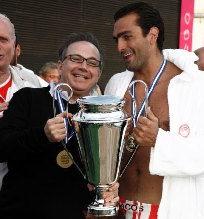 Ο Ολυμπιακός κατέκτησε το 13ο Κύπελλο Ελλάδας στην ιστορία του νικώντας 7-6 τον Πανιώνιο στη Σύρο. Δείτε στιγμές από την ώρα της στέψης. Photo: Action Images.