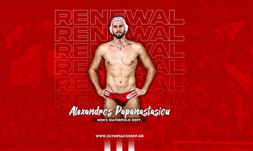 Ο Ολυμπιακός ανακοίνωσε την ανανέωση της συνεργασίας του με τον Αλέξανδρο Παπαναστασίου. Ο διεθνής περιφερειακός υπέγραψε το νέο του συμβόλαιο, τριετούς διάρκειας και παραμένει στο ρόστερ της ομάδας πόλο ανδρών του συλλόγου.