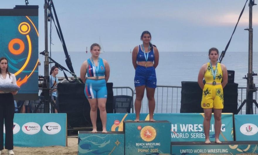 Η Έλλη Σεϊταρίδου στα 75 κιλά στην ηλικιακή κατηγορία U17 κατέκτησε το χρυσό μετάλλιο, ενώ η Ελένη Γαβρινιώτη στα 55 κιλά φόρεσε στο στήθος το χάλκινο μετάλλιο Ευρωπαϊκό Πρωτάθλημα Beach Wrestling που διεξάγεται στην Κροατία.