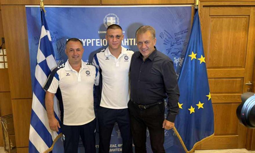 Στη συνάντηση παρευρέθηκε ο προπονητής του, Θέμης Ιακωβίδης, κι ο γενικός γραμματέας της ΕΛΟΠ, ο Ολυμπιονίκης Κώστας Θάνος.