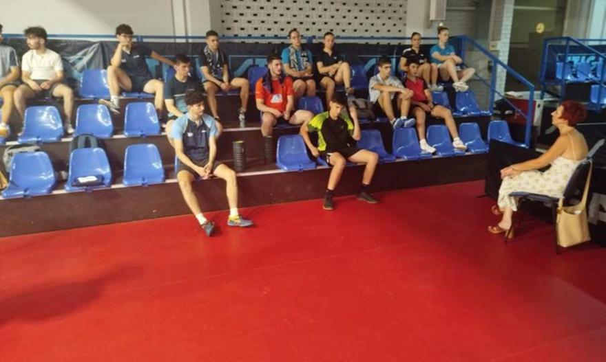 Μετά το τέλος της πρωινής προπόνησης γνώρισε τους αθλητές και τους μίλησε για λίγα λεπτά η Καλλιόπη Πρόφη, η οποία ανέλαβε τη στήριξη νέων κι έμπειρων διεθνών στο πολύ σημαντικό αυτό κομμάτι. «Από την εμπειρία μου με αθλητές γνωρίζω καλά πόσο δύσκολη προσπάθεια κάνετε, καθώς αθλείστε σε υψηλό επίπεδο παράλληλα με υποχρεώσεις στην οικογένεια, στο σχολείο ή στην προσωπική σας ζωή. Συνεπώς, είτε μία κατάσταση με πολλά συναισθήματα κι εμείς θα είμαστε δίπλα σας από δω και μπρος να σας βοηθήσουμε να τα διαχειριστείτε, να κοντρολάρετε την πίεση χωρίς να χάσετε τη χαρά του παιχνιδιού. Ο αθλητισμός έχει πολλά πνευματικά επίπεδα, το ταξίδι πρέπει να το απολαμβάνετε, δεν είναι όλα νίκες κι έπαθλα», τόνισε η επιστήμονας και στο ίδιο πνεύμα πρόσθεσε: