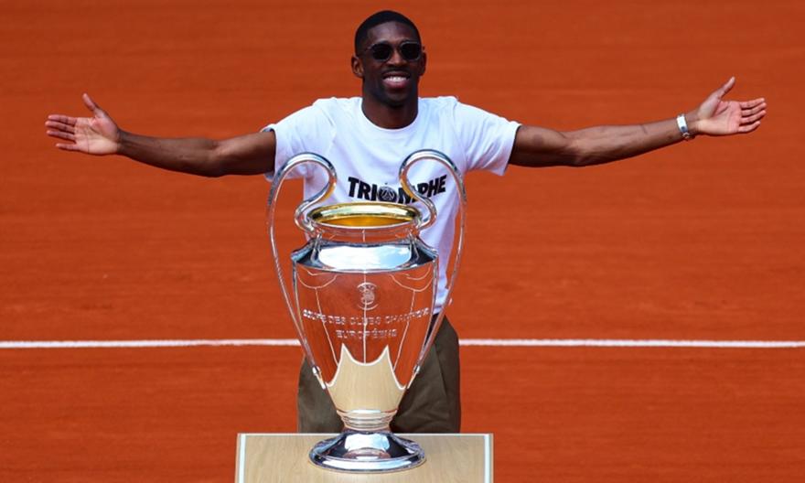 Οι εγκαταστάσεις του Roland Garros βρίσκονται δίπλα στο γήπεδο της Παρί, με τον Ουσμάν Ντεμπελέ να παίρνει την κούπα με τα μεγάλα «αυτιά» και να επισκέπτεται το ιστορικό γήπεδο, «Philippe-Chatrier»!