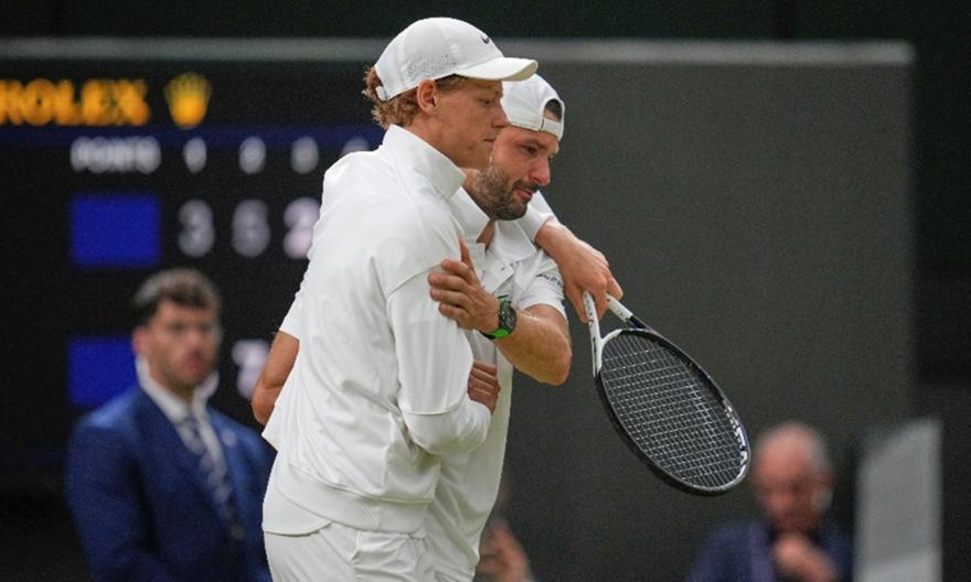 Ο Γιάνικ Σίνερ βρίσκεται για 4η συνεχόμενη χρονιά στα προημιτελικά του Wimbledon, όμως η πρόκρισή του αυτή τη φορά είχε πικρή γεύση. Ο Ιταλός πέρασε χωρίς να ολοκληρωθεί το ματς, καθώς ο Γκριγκόρ Ντιμιτρόφ αποχώρησε τραυματίας, ενώ το σκορ ήταν 2-0 σετ (6-3, 7-5, 2-2 στο τρίτο) υπέρ του Βούλγαρου.