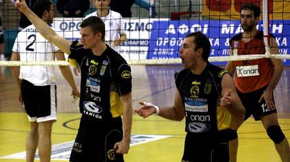 Την πρόκριση για τις θέσεις 5-6 της Α1 βόλεϊ των ανδρών πήρε ο Άρης επικρατώντας εύκολα με 3-0 σετ του ΠΑΟΚ στα Βασιλικά κάνοντας έτσι το 2-1 στις μεταξύ τους αναμετρήσεις. Οι «κιτρινόμαυροι» ήταν ανώτεροι των συμπολιτών τους και δεν τους άφησαν το παραμικρό περιθώριο σε κανένα απ’ τα τρία σετ. Έτσι οι Θεσσαλονικείς έχοντας το πλεονέκτημα έδρας θα κοντραριστούν με τον Φοίνικα Σύρου για την πέμπτη θέση που οδηγεί στο Τσάλεντζ Καπ της επόμενης περιόδου.