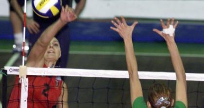 - ακουμπώντας την ταινία στην κορυφή του φιλέ ή το μέρος της αντέννας που βρίσκεται πάνω από τον φιλέ (80 cm) κατά την προσπάθειά του/της να παίξει την μπάλα, ή