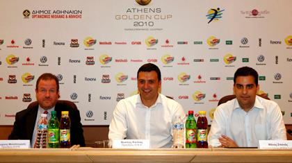 Αντίστροφα μετράει ο χρόνος για την έναρξη του Athens Golden Cup 2010, που θα φιλοξενηθεί στην πλατεία Συντάγματος από τις 2 έως τις 6 Ιουνίου, με το οποίο θα αρχίσει το Πανελλήνιο Σιρκουί Beach Volley. Η παρουσίαση της διοργάνωσης έγινε την Πέμπτη, 27/5, σε συνέντευξη Τύπου που δόθηκε στο Δημαρχιακό Μέγαρο των Αθηνών και στην οποία βασικοί ομιλητές ήταν ο πρόεδρος του Οργανισμού Νεολαίας Αθηνών (ΟΝΑ), Βασίλης Κικίλιας, ο πρόεδρος της διοικούσας επιτροπής της ΕΟΠΕ, Γιώργος Μελισσουργός και ο διευθυντής Marketing Pepsico ΗΒΗ, Μάνος Σπανός. Την εκδήλωση τίμησαν με την παρουσία τους τα μέλη της διοικούσας επιτροπής της ΕΟΠΕ, Γιάννης Στουραΐτης, Ανδρέας Βαλσαμής και Παναγιώτης Σιδέρης.