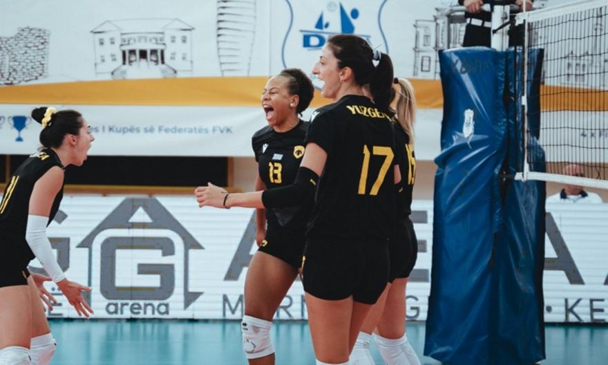 Πανηγυρική πρόκριση στο Challenge Cup πέτυχε η ΑΕΚ στο Κόσοβο μετά την κατάκτηση της πρώτης θέσης στο Βαλκανικό Κύπελλο Γυναικών.