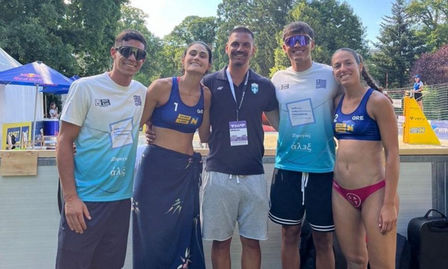 Εκτός του τρίτου γύρου του Challenge μπιτς βόλεϊ του Μπάντεν της Αυστρίας έμειναν την Τρίτη οι Δήμητρα Μαναβή κι Ιωάννα Τριανταφυλλίδη. Στον πρώτο γύρο, οι Ελληνίδες πρωταθλήτριες νίκησαν τις Καναδέζες αδερφές Γκλαγκό, Γκλαγκό 2-1 σετ (17-21, 21-17, 17-15).