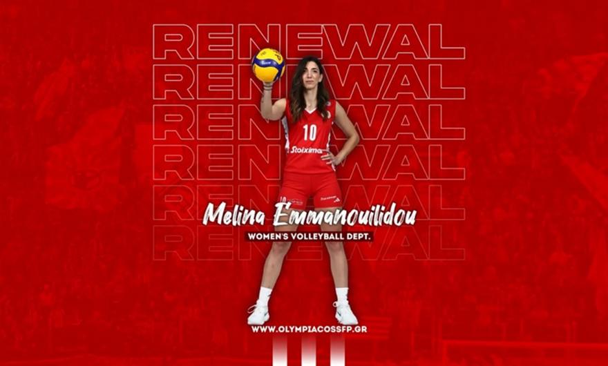 Η δήλωση της Μελίνας Εμμανουηλίδου: «Είμαι πολύ χαρούμενη που η συνεργασία μας συνεχίζεται για ακόμα μια χρονιά. Στον Ολυμπιακό αισθάνομαι πολύ όμορφα, αισθάνομαι ασφάλεια. Όπως πάντα, θα δώσω τον καλύτερο μου εαυτό για να παραμείνει στην κορυφή η ομάδα».