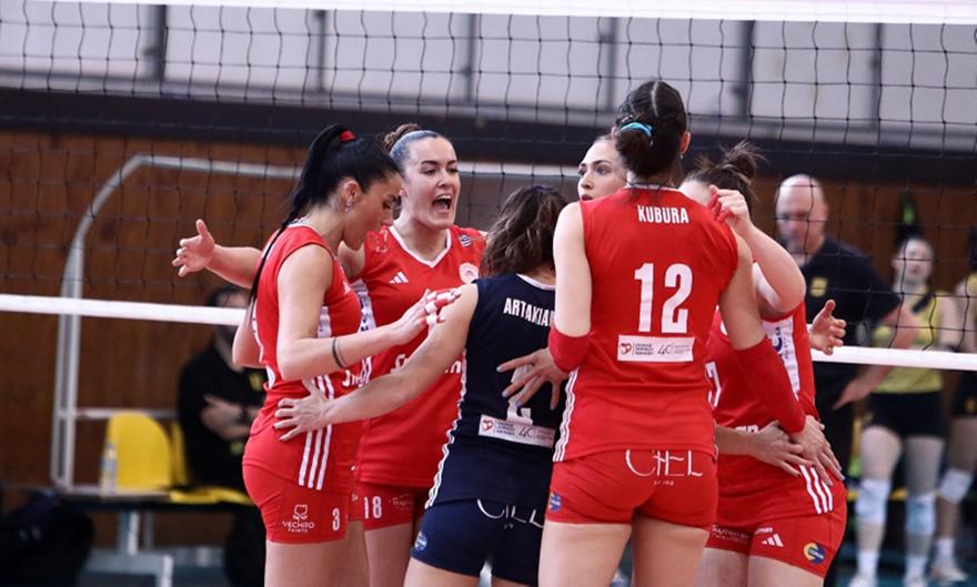 Η Νιζέτιχ έδωσε το πρώτο προβάδισμα στον Ολυμπιακό (16-17), η Λαμπρούση με μπλοκ αύξησε τη διαφορά (16-18) και το 16-19 ήρθε μετά από άουτ επίθεση του Άρη. Οι γηπεδούχες επιχείρησαν να κάνουν και αυτές την ανατροπή και παρά το 22-23, Κούμπουρα και Ντι Ιούλιο τελείωσαν το ματς με 23-25.
