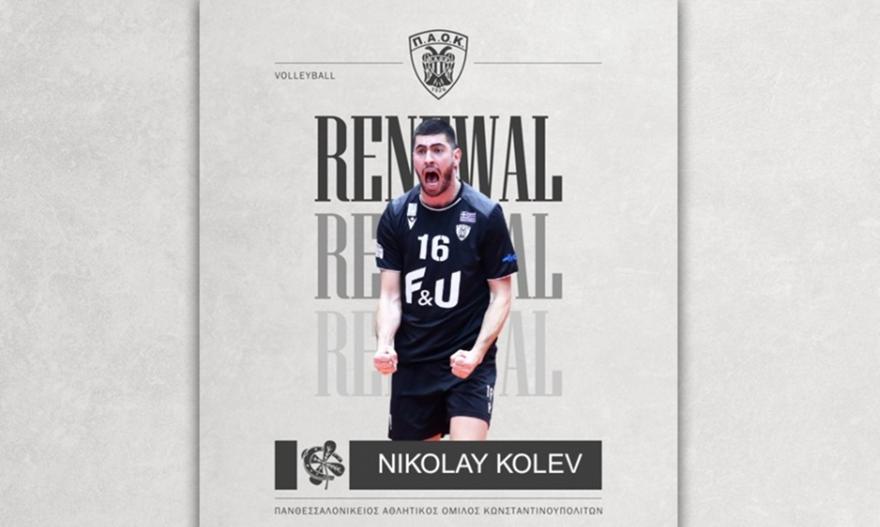 Βολεϊμπολίστας του ΠΑΟΚ παραμένει και την επόμενη σεζόν ο Νικολάι Κόλεφ. Ο «ασπρόμαυρος» Ερασιτέχνης ανακοίνωσε την ανανέωση της συνεργασίας του με τον 28χρονο Βούλγαρο διεθνή κεντρικό για έναν ακόμα χρόνο, ώστε να βοηθήσει το τμήμα να διεκδικήσει υψηλούς στόχους για δεύτερη σερί χρονιά.