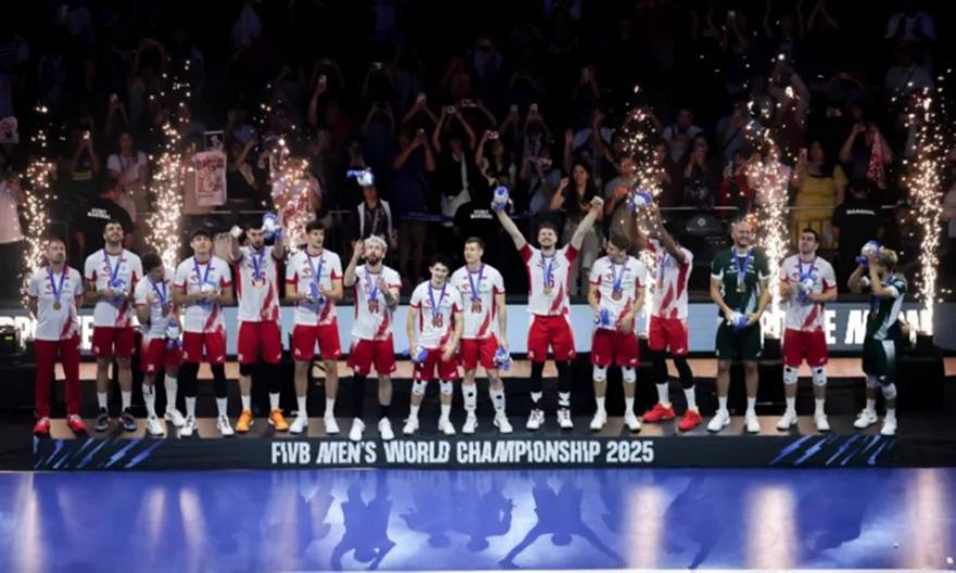 Η κορυφαία ομάδα στην παγκόσμια κατάταξη, Πολωνία, κατέκτησε το χάλκινο μετάλλιο στο Παγκόσμιο Πρωτάθλημα Βόλεϊ Ανδρών 2025, επικρατώντας της Τσεχίας με 3-1 σετ (25-18, 23-25, 25-22, 25-21), στην SM Mall of Asia Arena, στην πόλη Πασάι των Φιλιππίνων.