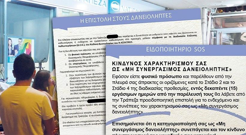 «Επισημαίνεται ότι η κατηγοριοποιησή σας ως "Μη συνεργάσιμος δανειολήπτης" συνεπάγεται και τον κίνδυνο πλειστηριασμού της μοναδικής σας κατοικίας!»
