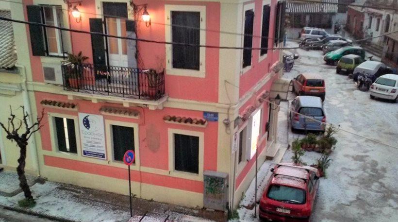 Στα «λευκά» από χαλάζι σε μέγεθος φουντουκιού η Κέρκυρα