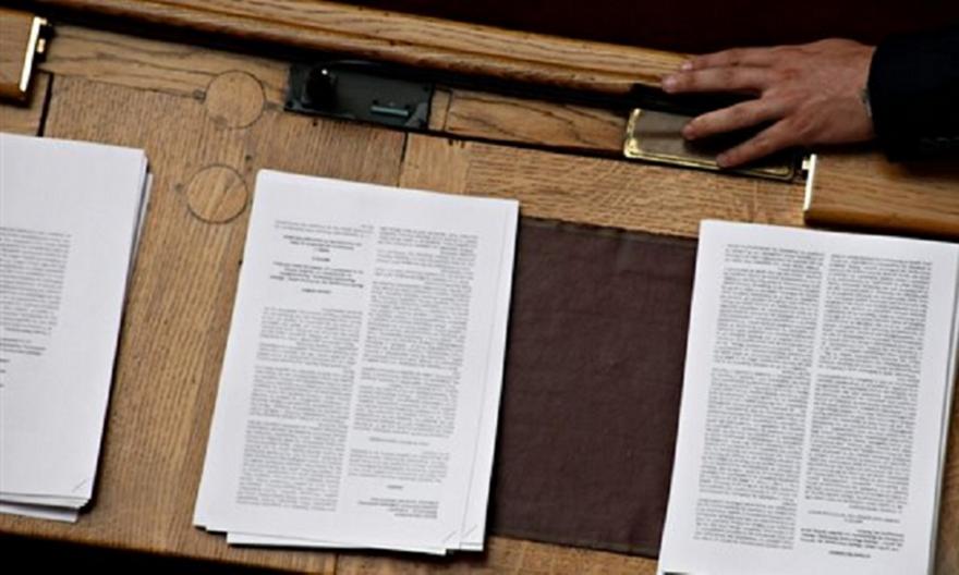 Ο συνωστισμός για το ένα και μοναδικό αντίγραφο δυσχέραινε τη διαδικασία με αποτέλεσμα οι βουλευτές να κάνουν ανάγνωση σε κομμάτια μοιράζοντας τις σελίδες.