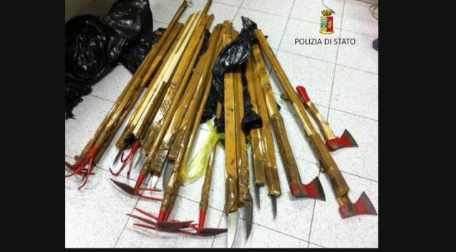 Πλαστικά γκλοπ, κοντάρια, τούβλα, πέτρες, φτυάρια και άλλα πολλά ήταν μερικά από τα εκατοντάδες συνολικά «όπλα» που βρήκε η ιταλική αστυνομία στους οργανωμένους οπαδούς των δύο ομάδων.