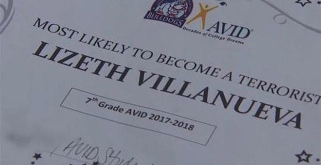 Η 13χρονη μαθήτρια στο γυμνάσιο Anthony Aguirre είχε δηλώσει στην κρατική τηλεόραση του Χιούστον KPRC ότι σοκαρίστηκε παραλαμβάνοντας το βραβείο, με το τέλος της σχολικής χρονιάς, σημειώνοντας ότι ο δάσκαλος θεώρησε πως θα ήταν διασκεδαστικό.