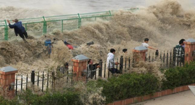 Το ύψους 20 μέτρων παλιρροϊκό κύμα έσκασε με ορμή στην ακτή της πόλης Χαϊνίνγκ στην ανατολική επαρχία Ζεζιάνγκ καταστρέφοντας τον κυματοθραύστη που υπήρχε.