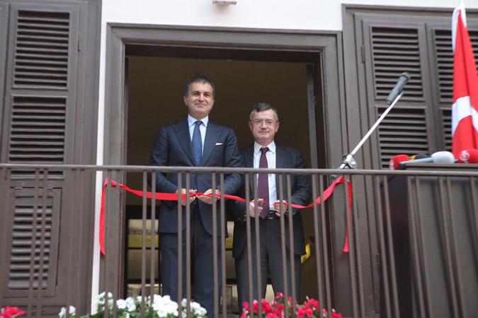 Την κορδέλα των εγκαινίων έκοψαν ο Τούρκος υπουργός Πολιτισμού Ομέρ Τσελίκ και ο Ελληνας υφυπουργός Εξωτερικών, Άκης Γεροντόπουλος, ύστερα από πρόσκληση του Τούρκου υπουργού προς τον κ.Γεροντόπουλο.