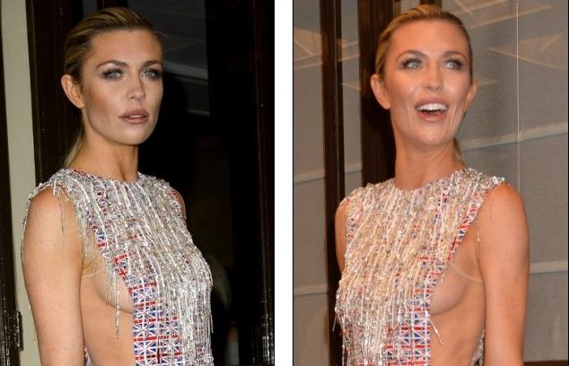 Το 27χρονο μοντέλο εμφανίστηκε σε επίδειξη μόδας στο Λονδίνο φορώντας ένα φόρεμα που είχε πάνω δεκάδες μικρές σημαίες της Αγγλίας αφήνοντας εντελώς γυμνές τις δύο πλευρές του σώματός της.