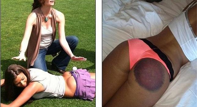 Σε μία σέξι στάση η Elizabeth με το μπαλάκι του γκολφ στα οπίσθιά της περιμένει κάποιος να το χτυπήσει και να ολοκληρωθεί η φωτογράφηση. Όμως, εκείνος αστόχησε και αντί το μπαστούνι να βρει την μπάλα, βρήκε τους γλουτούς της!
