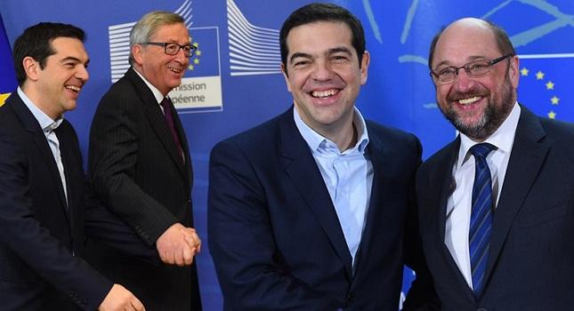 Ο πρωθυπουργός της Ελλάδας Αλέξης Τσίπρας είναι καλοδεχούμενος στο Ευρωκοινοβούλιο, δήλωσε από την πλευρά του ο Μάρτιν Σουλτς. Και συνέχισε: «Πολύ καλό σημάδι ότι ο κ. Τσίπρας μάχεται για την ευρωπαϊκή συνεργασία - Είμαι εξαιρετικά αισιόδοξος μετά τη σημερινή μας συνάντηση - Πρέπει να βρούμε τρόπο συμβιβασμού - Θα ήθελα 100% η ελληνική κυβέρνηση να μπορεί να επαφίεται στο ευρωπαϊκό κοινοβούλιο και στους ευρωπαϊκούς θεσμούς -Είστε καλοδεχούμενος στους ευρωπαϊκούς θεσμούς».