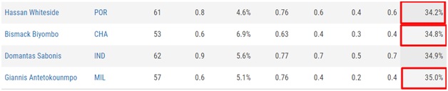 Ενώ στη συνολική κατάταξη το όνομα του φιγουράρει στη διόλου ευκαταφρόνητη 43η θέση. Σε μία λίστα που η πρώτη 50αδα έχει εύλογα μόλις άλλα δύο γκαρντ (Ντέρικ Γουάιτ και Τζρου Χόλιντεϊ).