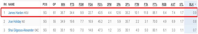 Η στατιστική υπεράσπιση της αμυντικής του μετάλλαξης δεν τελειώνει εδώ. Ο Τζέιμς Χάρντεν είναι ο καλύτερος μπλοκέρ στη θέση του με σχεδόν ένα κόψιμο ανά αγώνα.