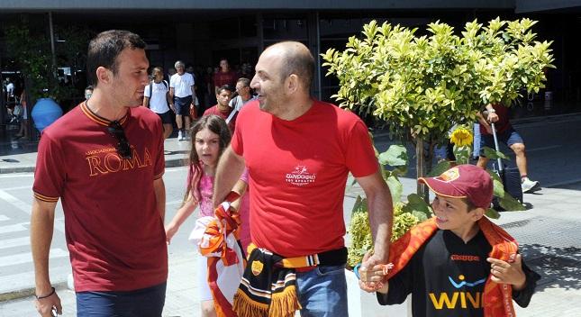Κάποιοι οπαδοί των «τζιαλορόσι» υποδέχτηκαν την ομάδα με φανέλες και σημαίες της Ρόμα. Στην αποστολή συμμετέχουν οι: Μπαλτσαρέτι, Μπενάτια, Μποριέλο, Μπράντλεϊ, Μπουρντίσο, Καρπάρι, Καστάν, Ντοντό, Γεντβάι, Λαμέλα , Λόμποντ, Μαρκίνιο, Οσβάλντο, Πιάνιτς, Ρομανιόλι, Σκορούπσκι, Στρούτμαν, Ταντέι, Τάλο, Τοροσίδης, Βέρε και Τότι.