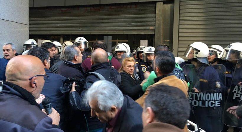 Με την επέμβαση της αστυνομίας, ένταση, λιποθυμίες και τραυματισμούς έληξε λίγο μετά τις 08:00 το πρωί η συμβολική κατάληψη που επιχείρησαν εργαζόμενοι στα δημόσια νοσοκομεία στην είσοδο του υπουργείου Οικονομικών στην οδό Νίκης στο Σύνταγμα.