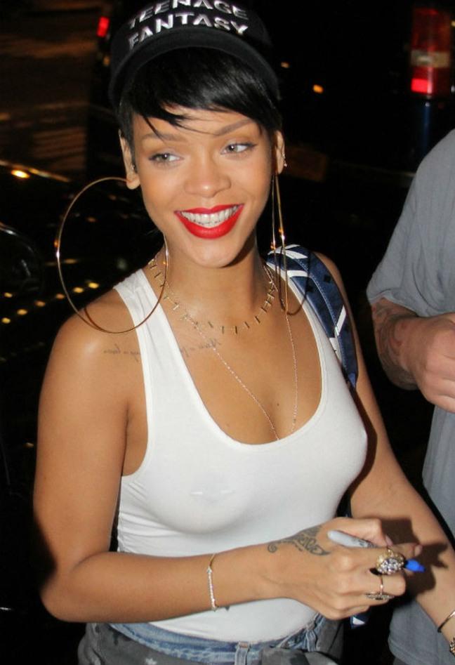 Με ένα καπελάκι του μπέιζμπολ, τζιν σορτσάκι και λευκό διαφανές μπλουζάκι, που αποκάλυπτε το στήθος της, καθώς δεν είχε φορέσει σουτιέν, εμφανίστηκε η τραγουδίστρια της r’n’b Rihanna έξω από το δημοφιλές ιταλικό εστιατόριο Da Silvano στο West Village, στη Νέα Υόρκη