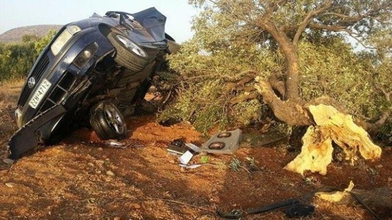 Ήταν τέτοια η πρόσκρουση που το δέντρο κόπηκε στα δύο. Στα συντρίμμια αυτοκινήτου και ελιάς εγκλωβίστηκαν οι δύο επιβαίνοντες στο όχημα, μια 25χρονη κοπέλα και ένας 37χρονος άνδρας