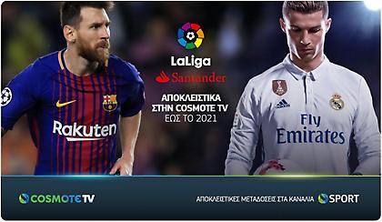 Την αποκλειστική τηλεοπτική μετάδοση των αγώνων της LaLiga Santander, της κορυφαίας ποδοσφαιρικής διοργάνωσης της Ισπανίας, συνεχίζει και την ερχόμενη τριετία, έως το 2021, η COSMOTE TV.