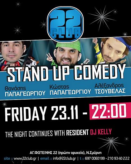Οι Κώστας και Θανάσης Παπαγεωργίου μαζί με τον Αλέξανδρο Τσουβέλα κάνουν stand up comedy, με πρόζες, αυτοσχεδιασμούς, διαλόγους με το κοινό, μιμήσεις, την Παρασκευή 30 Νοεμβρίου στις 10 το βράδυ και ότι ήθελε προκύψει.