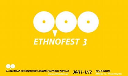 Την Παρασκευή 30 Νοεμβρίου και το Σάββατο 1 Δεκέμβρη, το 3ο Φεστιβάλ Εθνογραφικού Κινηματογράφου θα διεξαχθεί στην ειδικά διαμορφωμένη αίθουσα «Exile Room», στο Μοναστηράκι (Αθηνάς 12 απέναντι από το Μετρό). Οι πολύ καλές επιλογές των φιλμ σε συνδυασμό με την δωρεάν είσοδο διευκολύνουν περισσότερο την προσέλευση που αναμένεται μεγάλη για τους κινηματογραφόφιλους των Αθηνών και όχι μόνο.